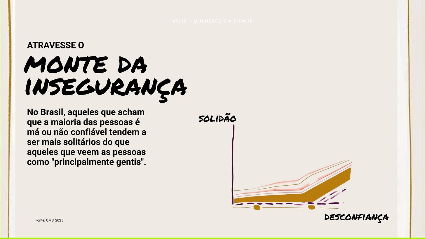 O resultado desse receio é uma sociedade de estranhos. No Brasil, apenas 6% das pessoas concordam que “podemos confiar na maioria das pessoas”. Os outros 94% vivem no modo “cautela total”. O problema é que o medo gera desconfiança, que gera isolamento, que gera uma cidade de ruas vazias. E, convenhamos, nada é mais desolador (e parece mais perigoso) do que uma rua sem ninguém.
