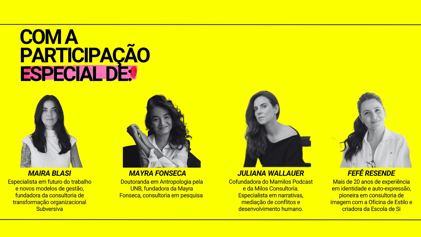 Serão 5 encontros virtuais para mentoria coletiva com mediação de Thaís Fabris e participação especial de Maíra Blasi, Juliana Wallauer, Fefe Resende e Mayra Fonseca, e um brunch de encerramento para troca e conexão entre as participantes, além de um grupo de whatsapp para criar uma comunidade permanente de líderes.